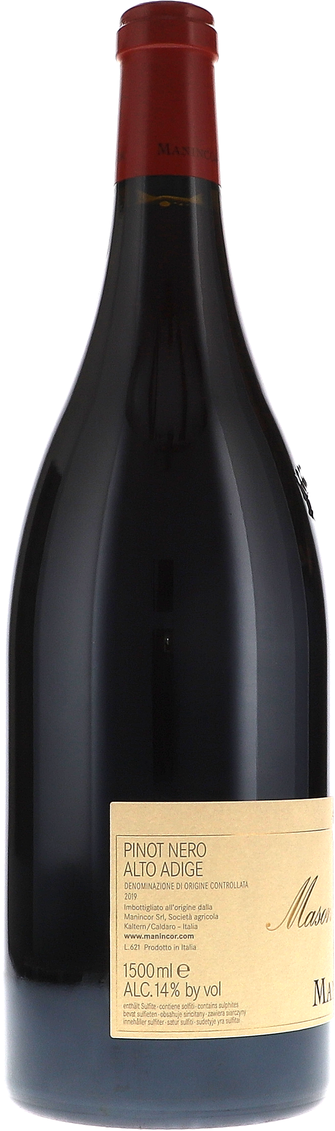 Mazzon, von Manincor „Mason“ genannt, um Verwechslungen mit der größeren Lage oberhalb von Neumarkt zu vermeiden. Vier Hektar sind in dieser einmaligen Lage mit Pinot Nero bestockt, ein nach Süden geneigtes Hochplateau auf 400-450 m Meereshöhe, sonnenverwöhnt und konstant dem Wind ausgesetzt – ideale Voraussetzungen für die engbeerigen Pinottrauben. Der Boden ist sandiger Lehm und von verschiedenen Steinen durchzogen: Dolomit, Porphyr, Gneiss und Granit findet man hier vom kleinen Korn bis zum faustgroßen Stein.