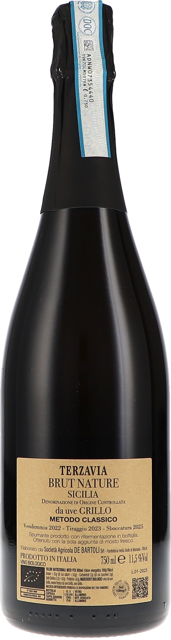 In der Nase verbindet der Terzavia Brut von Marco de Bartoli eine zarte Oxidation mit feinem Backwerk und subtiler Frucht, umweht von einer warmen, mediterranen Brise. Die Aromen frischer Roggensauerteigbrotrinde verbinden die dezenten Autolysenoten mit zarter Oxidation, die im fermentierten Charakter des Brotes reflektiert. Der warme Abendwind weht sanft mit saliner Brise über eine Schale frischen Obstes mit Khaki, Mandarinen und Pfirsichen. Das Roggenbrot ist frisch gebuttert und mit Salzkristallen aus Trapanis Salinen bestreut.