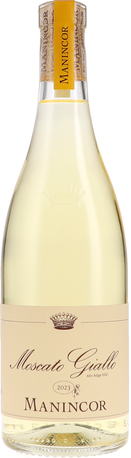 Die Nase des 2023er Moscato Giallo von Manincor zeigt sich ultra-zurückgenommen, fast schüchtern. Geprägt vom Ausbau auf der Feinhefe, zeigen sich die typischen Aromen des Gelben Muskatellers zu Beginn nur zaghaft. Dann kommen die typischen Muskatnoten, die an Macis und Nussschalen erinnern. Aromen nach Trauben und grünen Mostbirnen mischen sich mit floralen Obertönen nach weißen Blüten in der Kopfnote.