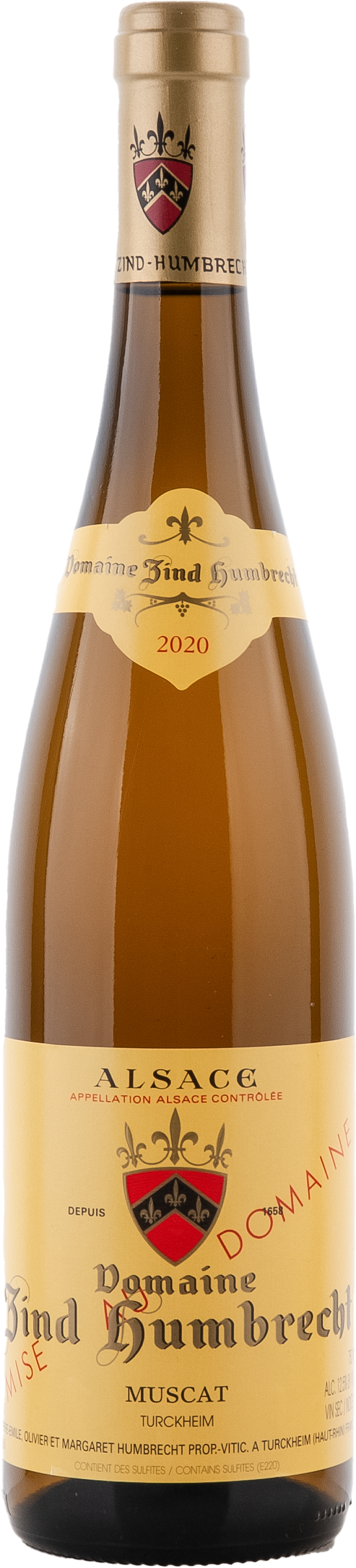 Der Muscat stammt von einer Selektion eigener alten Rebstöcke von weißen und roten Trauben der Sorte Muscat d’Alsace. Er ist spät reifend mit guter Säurestruktur und bestens an das warme Klima angepasst. Der Turckheimer Muskateller wird ausschließlich auf den reichhaltigen und tieferen Teil des Schwemmlandes von Turckheim angebaut, wo es etwas kühler ist und den sommerlichen Trockenperioden besser begegnet. Die Muscat benötigt volle physiologische Reife und darf daher nicht zu früh gelesen werden um pflanzliche Aromen zu vermeiden.