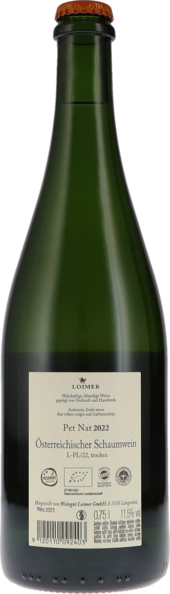 Der Loimer Pet Nat ist österreichischer Schaumwein aus Muskateller- und Grüner Veltliner-Trauben des Jahrgangs 2022.