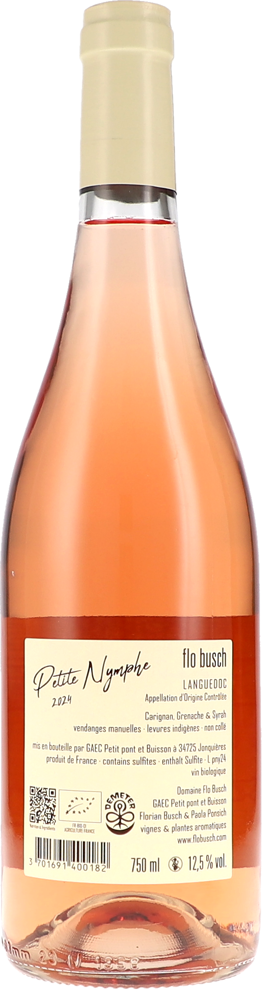Ursprünglich war es Florian Buschs Idee, zusammen mit seinem Bruder Johannes irgend- wie die tragende Rolle im Weingut ihrer Eltern in Pünderich an der Mosel zu übernehmen. Aber Florian hat seine Liebste im Languedoc gefunden und zusammen mit ihr, mit Paola Ponsich, 2018 die Domaine Flo Busch gegrün- det. Das Weingut liegt in Jonquières im Dépar- tement Hérault. Das Terroir ist zum Großteil von Kalksteinschotter als Basis, und ein kleine- rer Teil vom Kalksteinmergel geprägt, auf dem die beiden aktuell 8 Hektar Grenache Blanc und Grenache Rouge, Vermentino, Carignan und Syrah bewirtschaften. Die Weinberge sind schon zertifiziert oder befinden sich in Umstel- lung auf biologischen Weinbau.