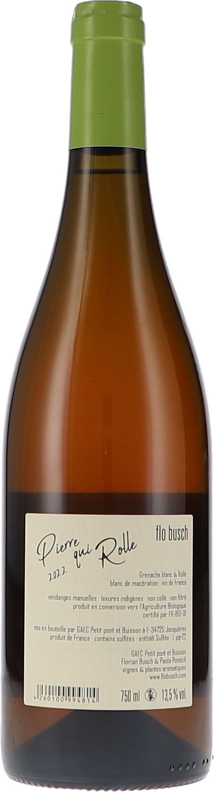 Dies ist ein Weißwein mit langem Maischekontakt. Es ist eine Cuvée aus 40 % Grenache Blanc und 60 % Rolle (Vermentino). Die Grenache stammt von einem Weinberg, in dem Flo Busch 2020 rund 50 % der Trauben durch Frost verloren hat. Der 3,5 Hektar große Weinberg ist mit Grenache Noir und Grenache Blanc bestockt. Der Boden ist geprägt von Kalksteinschotter und Galets roulés, die nicht ganz so groß sind wie jene in Châteauneuf, aber einen hohen Quarz-Anteil haben. Die Rolle-Trauben stammen aus einem 80 Jahre alten Weinberg auf der Höhe mit Kalksteingeröll. Der Boden dort ist locker und durchlässig, er wurde bereits vor dem Ankauf schon biologisch bewirtschaftet. Bestockt ist er zu einem Drittel mit Rolle und zu zwei Dritteln mit Syrah, der für den Pointe du Jour Verwendung findet. Nach der Handlese wurden die Trauben angequetscht, für rund zehn Tage wurde der Saft auf den Schalen belassen und danach wurde mit einer kleinen Korbpresse abgepresst. Der Saft wurde spontan im Stahltank vergoren und dann für zehn Monate im gebrauchten französischen Barrique ausgebaut. Im Anschluss wurde der Wein unfiltriert und ungeschönt mit einer kleinen Dosis Schwefel gefüllt.