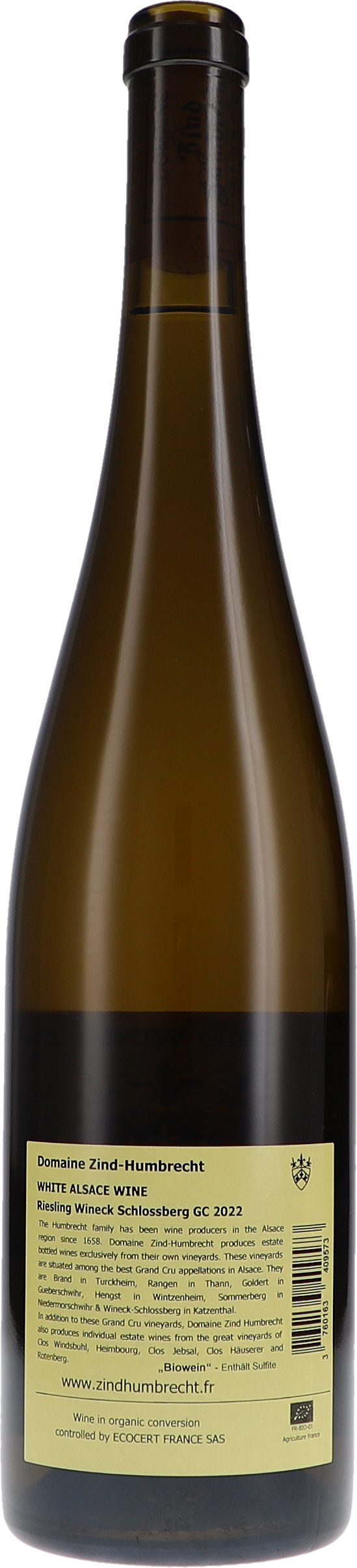 Der 2022er Riesling Wineck-Schlossberg ist ein kleiner und betörender Grand Cru, wir finden im Duft Zitrusfrüchte, Zitronenzeste, Zitronenthymian, Pfirsich und saftige Orange. Ein betörendes Fruchtpotpourri eingefasst in die schlanke, präzise Klarheit und Finesse des Granitboden auf dem er gewachsen ist.