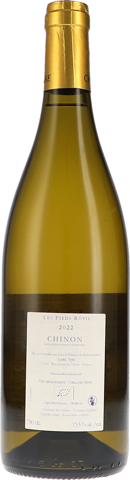 Der Les Pieds Rôtis ist ein Chenin Blanc, der im Wesentlichen aus einem Weinberg stammt, der früher unter der Appellation Touraine, heute aber als Chinon AOP erzeugt wird. Der Weinberg liegt auf der anderen Seite der Vienne und heißt tatsächlich Les Pieds Rôtis – diegegrilltenFüße. Er ist ein Cru, der sich durch sein Terroir aus Kies, fossilen Schwämmen, rotem Lehm (daher rote Füße) und weißem Kalkstein bei einem nach Südosten ausgerichteten Hang auszeichnet. Nach einer Ganztraubenpressung wurde der Chenin Blanc spontan im Holz vergoren und nach dem biologischen Säureabbau elf Monate auf der Hefe in mehrjährigen 400-Liter-Fässern ausgebaut.