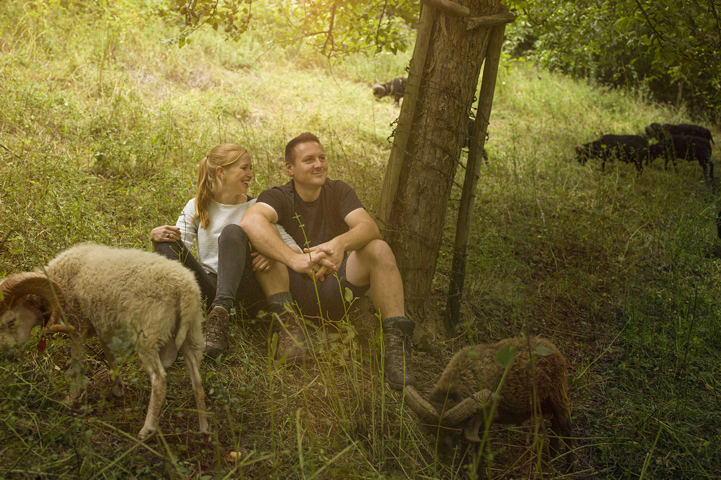 Julia Bertram und Benjamin Baltes kennen sich schon seit Schultagen. Doch die Beiden gingen zu nächst Ihre eigenen Wege. Benny erweckte das Weingut der Stadt Klingenberg am Main aus dem Dornröschenschlaf und führte es in ungeahnte Qualitätssphären und Julia jettete als deutsche Weinkönigin um die Welt, absolvierte ihr Önologiestudium in Geisenheim, half Benny in Klingenberg und stieg so ganz nebenbei ins elterliche Weingut an der Ahr wieder ein.