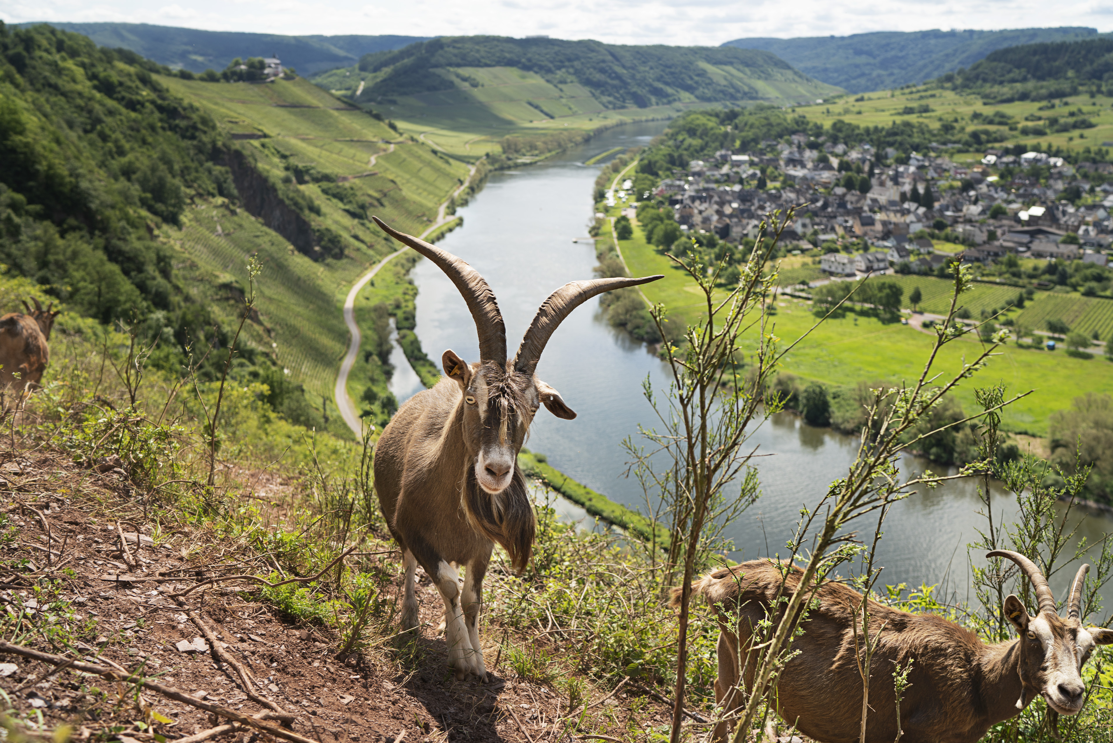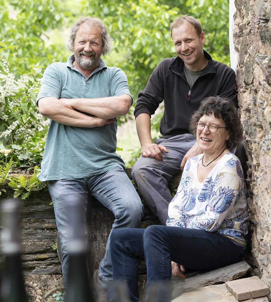 Eines der typischen Mosel-Amphitheater wölbt sich gegenüber von Pünderich der Marienburg entgegen. Wenn man mit der kleinen Fähre von Pünderich auf die „Weinseite“ fährt, fallen schon die unterschiedlichen Farben der Böden auf. Rot; Braun, Dunkelblau, Grau. Sie deuten auf eine geologische Verwerfung in dem Amphitheater hin, das zu einer ungewöhnlichen Vielfalt an Terroir auf kleinstem Raum führt. Leider alles unter dem Lagennamen „Marienburg“ gleichgeschaltet. Aber dank der Weine von Clemens Busch, wird diese Vielfalt schmeckbar. Unser Geheim-Tipp!