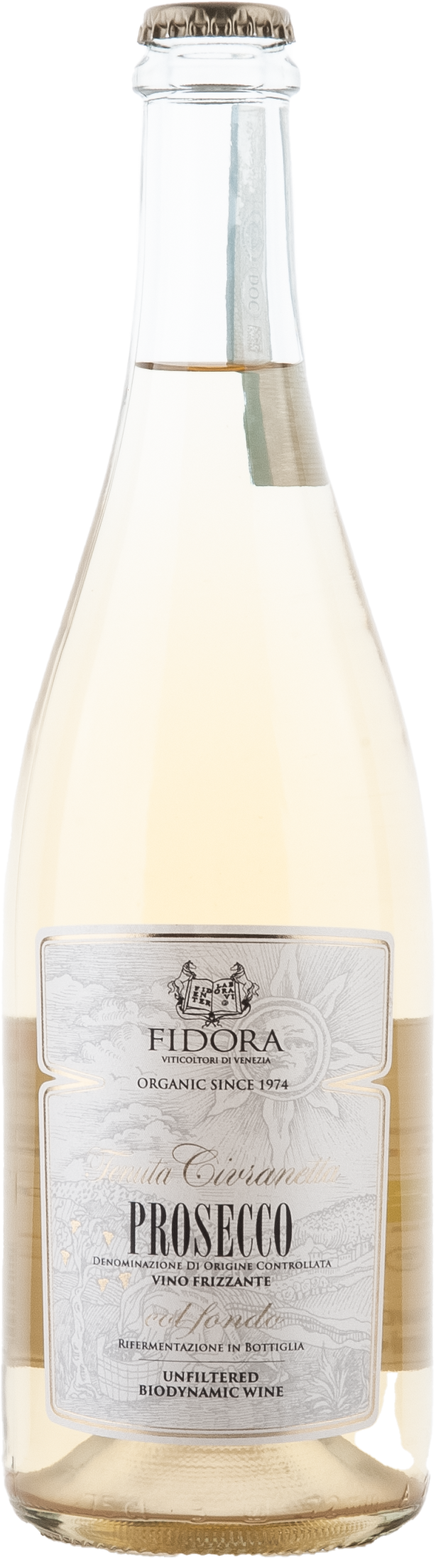 Fidora ist ein stattlicher landwirtschaftlicher Betrieb und Biopionier in Venetien. Bereits seit 1974 arbeitet man biologisch. Zu Fidora gehören drei Weingüter: eines in Valpolicella, eines in Valdobbiadene und das Hauptgut Civranetta. Das Gut umfasst insgesamt 160 ha, von denen 80 Ha Weinberge sind. Bis jetzt wird aber nur ein Teil selbst ausgebaut und vermarktet. Civranetta liegt in Küstennähe unweit der Lagune von Venedig. Hier auf den berühmten Caranto Böden gedeiht die Prosecco-Traube Glera hervorragend. Sie mag die lehmigen, Schwemmlandböden auf eiszeitlichen Sedimenten. Das wussten schon die Römer. Weinbau wird hier seit über 2000 Jahren betrieben. Die mineralreichen Böden geben den Trauben die nötige Struktur, und die kühle Brise vom nahen Meer sorgt für eine langsame, aromenschonende Reife. Dadurch entsteht hier ein mineralischer, feingliedriger und eleganter Prosecco.