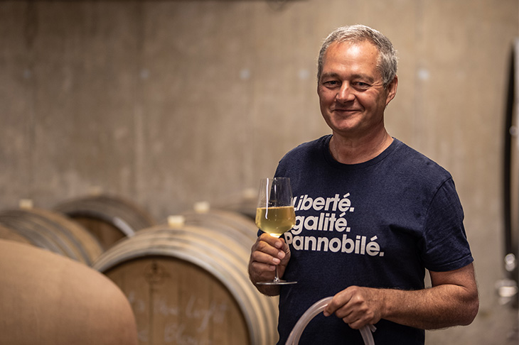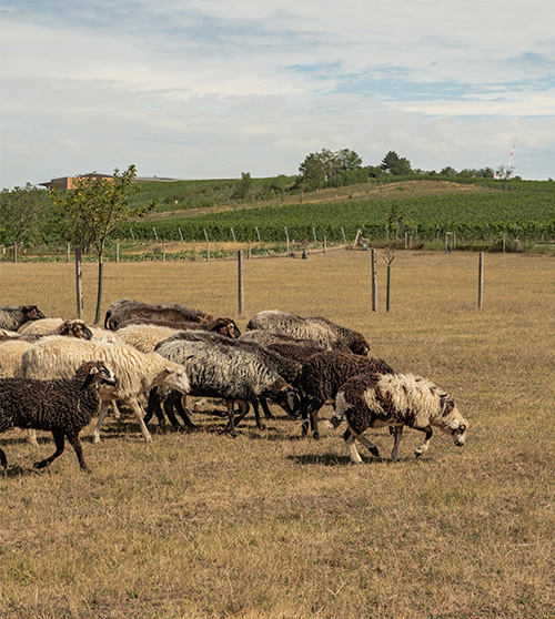Genauso spannend geht es im Keller weiter. Auf der einen Seite wirkt alles sehr pragmatisch, weil beim Neubau alles so geplant wurde, dass Trauben und Weine möglichst schonend verarbeitet werden können, auf der anderen Seite fasziniert der tiefste und kühlste Teil des Kellers durch eine Dimension an Holzfässern und Amphoren. Hier reifen die „Naturweine“, auch die Weißen oft maischevergoren und kaum geschwefelt und doch von der typischen Heinrich-Präzision und -Reinheit. Die Heinrichs leben den ganzheitlichen Ansatz der Biodynamie. Es wirkt fast etwas paradox, dass hinter dem futuristischen Kellerbau Enten watscheln, Schafe blöken und Pferde grasen.