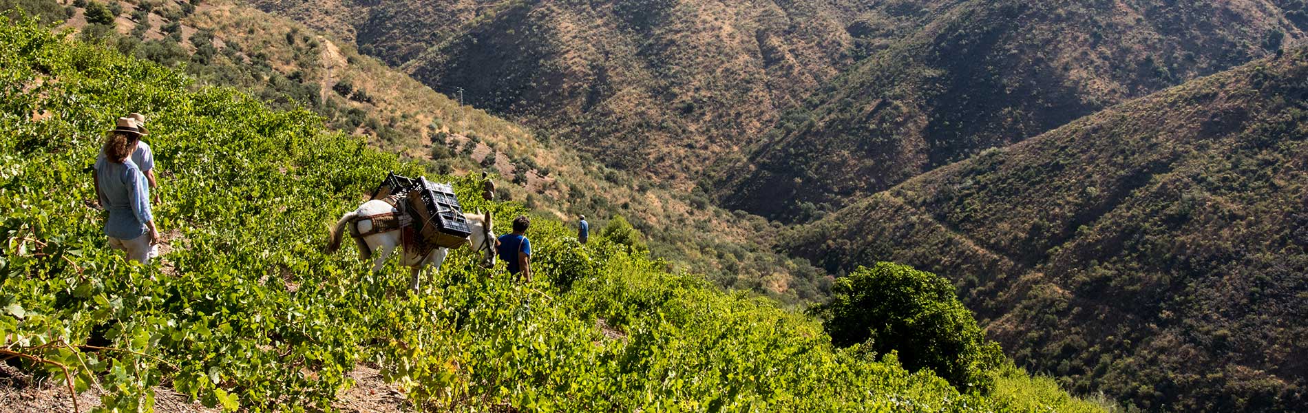 Von den einstmals über 120.000 Hektar Rebfläche, die sich von der Küste Málagas bis zu den steilsten Hängen in luftigen Höhen zogen, sind heute kaum über 2500 Hektar vorhanden. Hier hat sich Victoria Ordónez umgesehen, hat in Lagen vom 800 bis 1000 Metern Höhe an Hängen von 46 bis zu 76 %(!) Neigung, einige zum Teil winzige Parzellen mit ähnlich winzigen Erträgen zurückerobert. Es sind vornehmlich karge Glimmerschieferböden mit Anteilen von Grauwacke, Quarz, Sandsteineinsprengseln und magmatischen Intrusionen, auf denen zwischen 30 bis knapp 115 Jahre alte Reben wurzeln. In diesen Höhen (und bei diesem Gefälle) geschieht alles in Handarbeit, die gelesenen Trauben werden per Maultier transportiert – alles wie gehabt!
