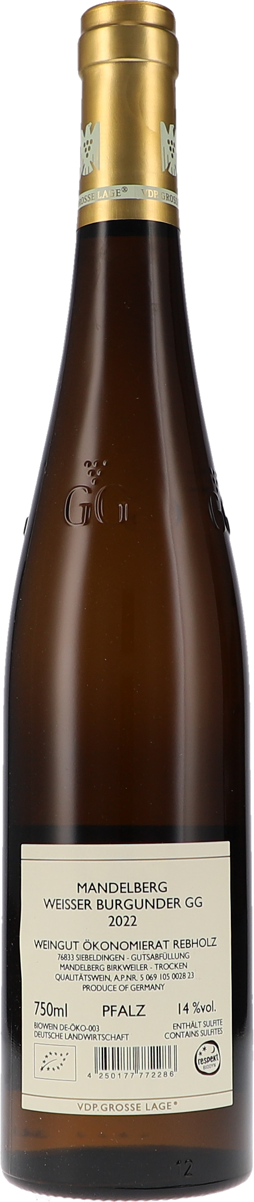 Der 2022er Weißer Burgunder Mandelberg GG duftet nach reifen Früchten, wie Birne, Weinbergs Pfirsich, Orange und etwas Mango. Er suggeriert Saftigkeit und wunderschöne Dichte und Konzentration bereits in der Nase. Subtil deuten sich Aromen von Kräutern, sowie kalkige und rauchige Anklänge , die ihm Facette und Verve verleihen an.